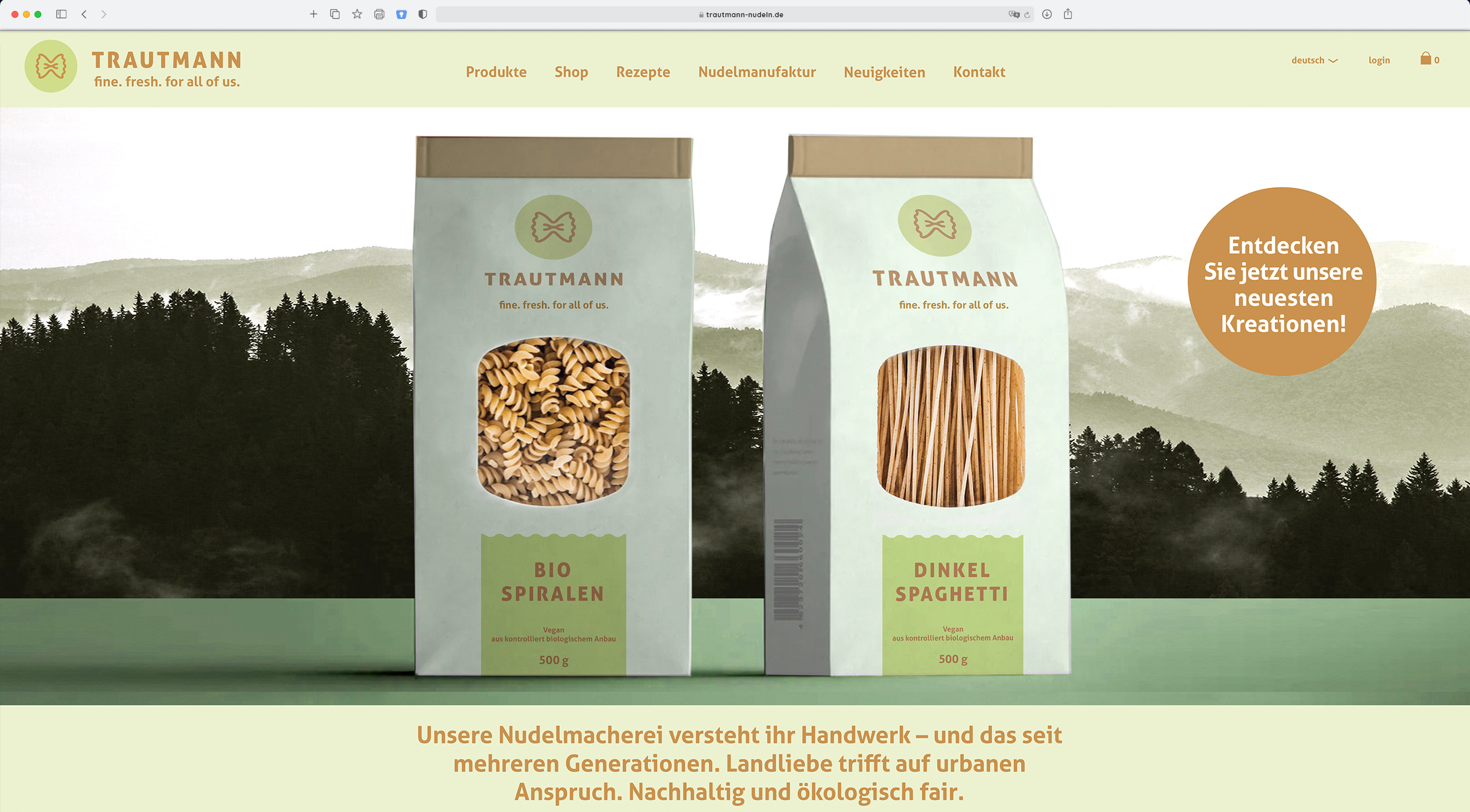 In der Folge "Die Schöffin" aus der TV-Serie "Strafe" von Ferdinand von Schirach haben wir das Rebranding des Nudel produzierenden Familienunternehmens Trautmann gestaltet. Aus einer alten, lieblichen Traditionsmarke, sollte ein Lifestylebrand samt Produkt- und Webseiten-Anmutung entstehen. Alternativ sollte es einen Softrelaunch geben, der sich kaum vom alten Logo abhebt.